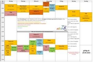 - Ab dem 25.08. findet montags nur noch ein Spinning Kurs von 18.15-19.15 Uhr statt!