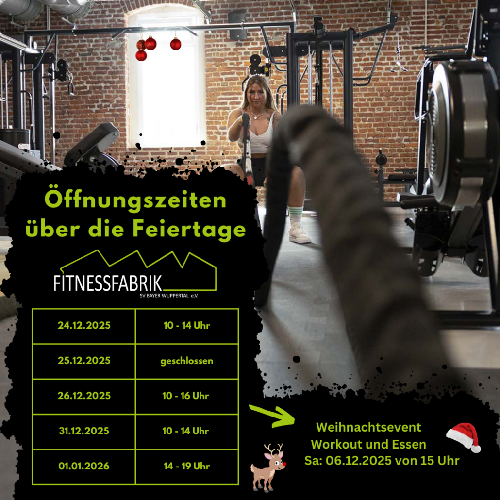 Das neue Aushängeschild des SV Bayer Wuppertal – eine ehemalige Fabrik, umfunktioniert zu einem hochmodernen Fitnessstudio. Die „Werkhalle“ ist ausgestattet mit klassischen Gym80-Kraftgeräten, brachialen Plate-Loaded-Maschinen sowie einem großen Functional-Fitness-Bereich.